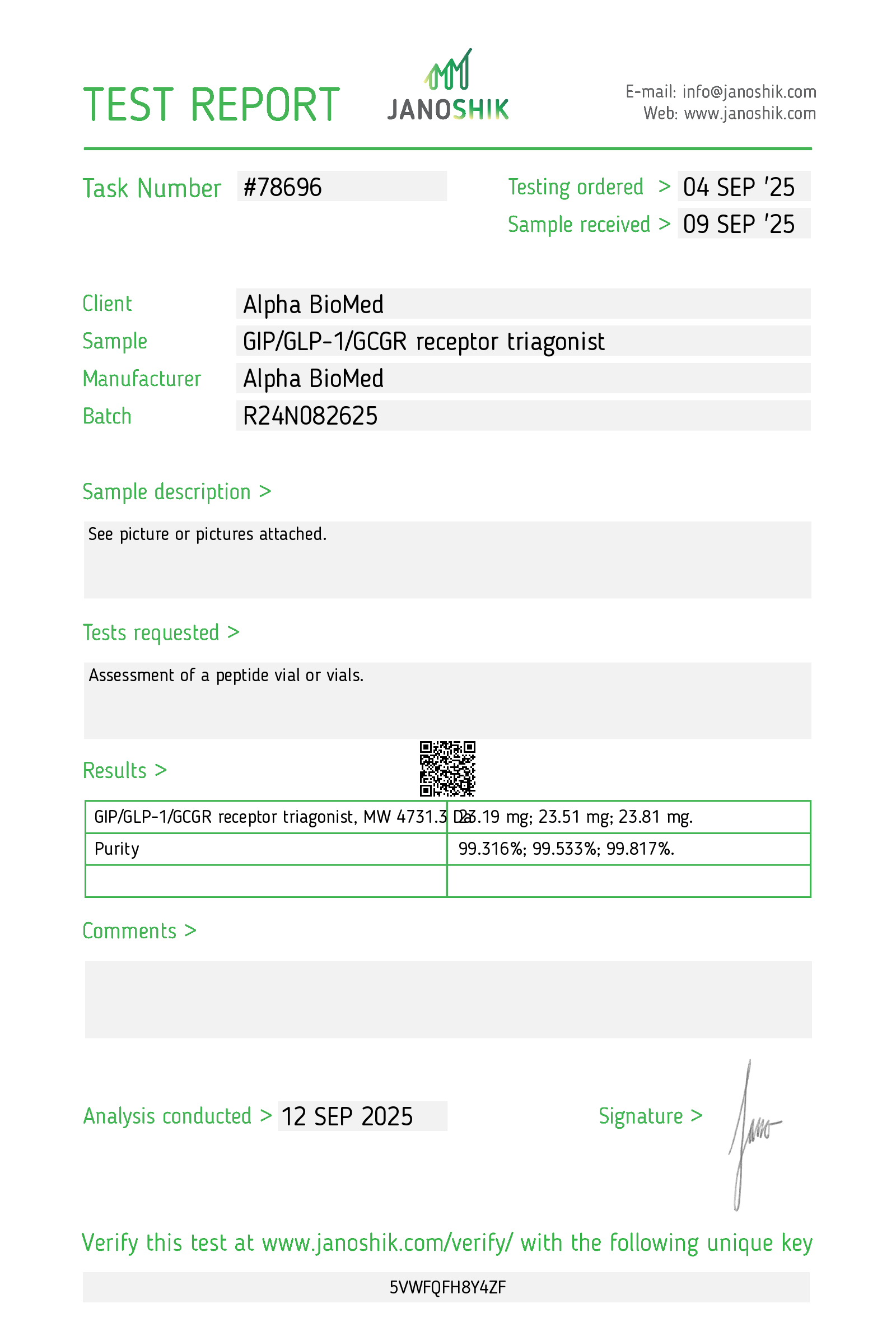 We are continuously conducting HPLC test on all of our raw powders as well as finished products to ensure the quality of our products. You can have the product you bought from us tested at any HPLC licensed testing facility and if the results are negative, we will refund the following:
